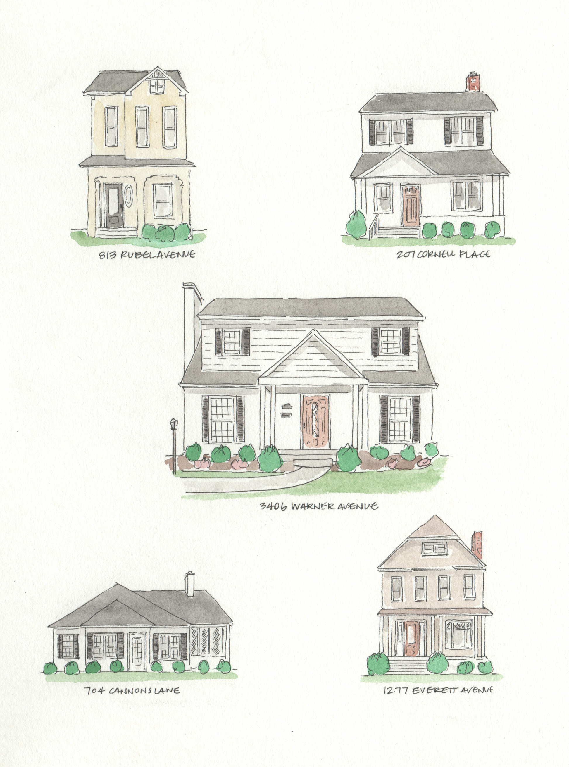 Tell your family's story with Multiple Watercolor House Portraits. This painting will feature multiple houses in one composition, your next family heirloom, ready to adorn your walls.